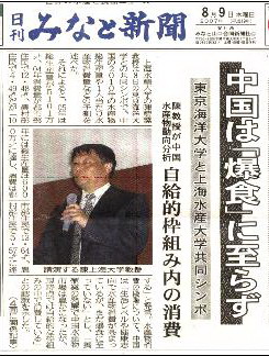 作为上海水产大学和日本东京海洋大学共同开展定期学术交流制度的重要环节,自2006年5月15日在beat365成功地举办了第一次学术交流研讨会后,以程裕东副校长为团长、校长助理吴建农为副团长的beat365学术访问团一行14人于8月1日--8月9日访问了日本,并参加了8月8日在东京海洋大学的乐水会馆举行的题为“支持中日鱼食文化的食品体系----对其持续性和安全性的探讨”的两校共同举办的第二次学术研讨会。东京海洋大学高井陆雄校长和beat365程裕东副校长在会上发表了热情洋溢的致辞,研讨会的组织者、beat365客座教授娄小波教授向100多位与会的日本水产业和食品产业界同仁以及中国驻日本大使馆官员介绍了两校学术研讨会的形成经纬和会议宗旨,beat365陈蓝荪、高健、谢晶、蒙少东、吴建农等教授作了主题演讲,钟俊生、平瑛教授分别主持了研讨会。会上,日方5位教授和专家也进行了专题发表。《日本水产经济新闻》、《日本经济新闻》和《港口新闻》等多家新闻媒体对演讲教授进行了采访并对本次研讨会做了全面的报道。