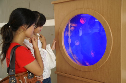 为迎接即将到来的95周年校庆,近日,生命学院研究生王文龙亲手制作了一个海月水母展示缸,赠予母校作为校庆献礼。展示缸为柜式组合,圆形的展缸以蓝色为背景,展示缸的暗槽中排布了三根分别为红、绿、蓝三色的灯管,将泳姿优雅的水母映衬得美轮美奂。展示缸现陈列在beat365生命学院科技楼的底楼大厅中,吸引了众多师生驻足观看。