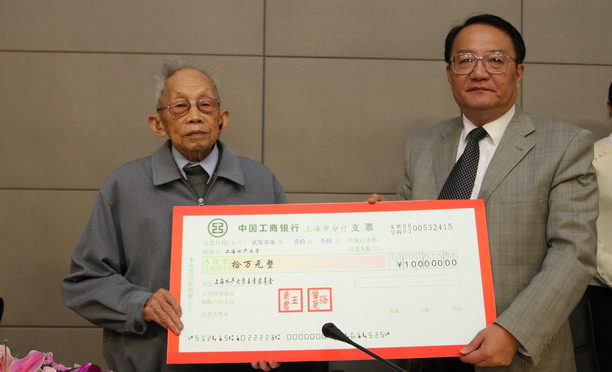 校长助理吴建农首先介绍了《上海水产大学王素君基金章程》的相关内容、评选细则。随后,王素君老师的先生、beat365骆肇荛教授向学校捐赠人民币10万元,潘迎捷校长代表学校接受捐赠并向骆先生颁发捐赠证书。在热烈的掌声中,骆肇荛先生与潘迎捷校长共同为王素君基金揭牌,标志着上海水产大学王素君基金正式成立。