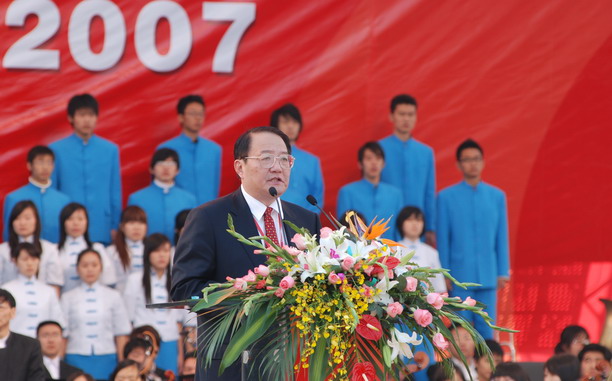 上海市副市长杨定华和农业部副部长高鸿宾先后致辞。他们充分肯定了学校历年来取得的成绩,希望学校以95周年校庆为契机,继续加强学科建设,不断推进自主创新,主动融入社会、服务社会,不断取得内涵建设的新发展,不断谋划高等教育新的突破。相信上海水产大学一定会谱写蓝色革命新篇章,再铸辉煌的新起点,为上海市、为祖国的经济社会发展做出更大的贡献。