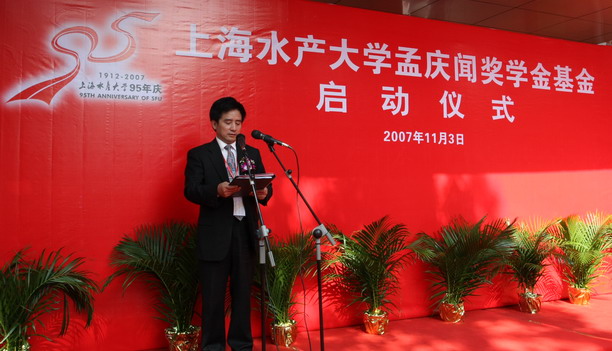 11月3日下午2时,伴着上海水产大学95周年诞辰的喜庆气氛,上海水产大学孟庆闻奖学基金启动仪式在beat365军工路校区行政楼前隆重举行,出席建校95周年庆典大会的部分院士、孟庆闻先生亲属代表、相关职能部门负责人、校友、学生代表出席启动仪式,仪式由校长助理吴建农主持。