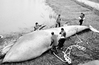 为保证巨鲸在旅途中不滑脱,拖船以尽可能慢的速度缓慢行进,近30公里的水上行程花了近6个小时,才靠上长兴岛的码头。体长近十米的巨鲸引起附近渔民的极大兴趣,纷纷前往观看。