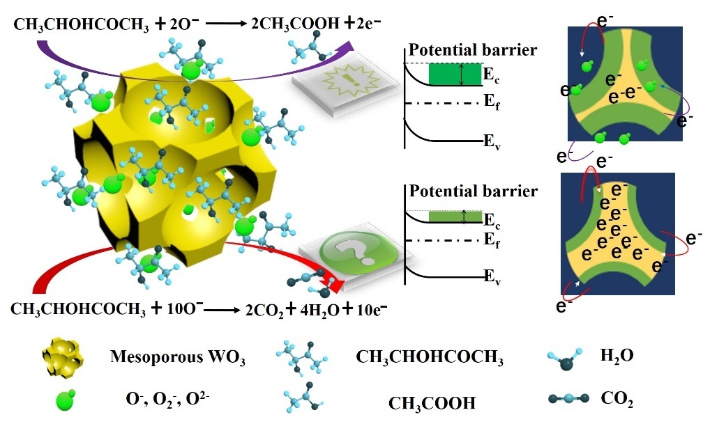 鉴于此,该研究团队采用一种创新的合成方法获得具有高结晶度有序的介孔WO3材料,而这种具有特殊结构的介孔WO3敏感材料对食源性致病菌产生的特有MVOCs具有快速的响应(< 10 s)、高的灵敏度(Rair / Rgas> 50)和很好的选择性。结果也表明这一研究对于理解气体敏感机理起到了重要作用,为优化气体传感器的灵敏度和选择性提供了新思路。该研究成果被能源材料化学协同创新中心作为研究亮点报道,同时被知名学术网站“纳米人”“Materials Views China”所报道。