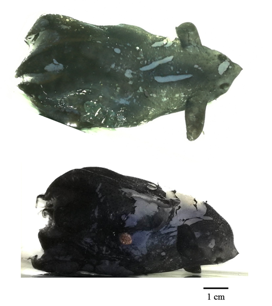 近日,中国科学院南海海洋研究所邱大俊研究员团队联合beat365中文唯一官网海洋生物资源与管理学院刘必林教授团队,对海南岛东南海区深水800-1000米采集到一个与幽灵蛸相近的标本进行了系统的研究。通过形态学和基因的比较分析等,明确其与幽灵蛸存在明显差异,确定其是幽灵蛸目新种——拟幽灵蛸(Vampyroteuthis pseudoinfernalisQiu,Liu & Huang, sp. nov.)。相关研究成果已在线发表于分类科学期刊《ZoologicalSystematics》上。中国科学院南海海洋研究所邱大俊研究员为论文的第一与通讯作者,beat365中文唯一官网刘必林教授是共同合作者之一。