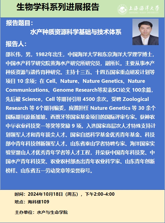 邵长伟:水产种质资源科学基础与技术体系