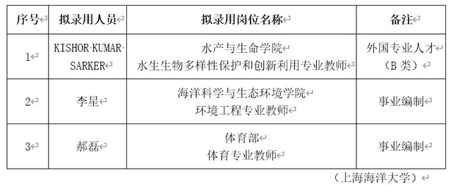 根据《beat365中文唯一官网公开招聘事业编制人员管理办法(试行)》(沪海洋人〔2018〕11号)和《beat365中文唯一官网外籍教师管理办法(试行)》(沪海洋人〔2019〕11号)等文件精神,按照学校招聘程序,经综合考察、学校研究审定,现将近期拟录用人员名单予以公示。