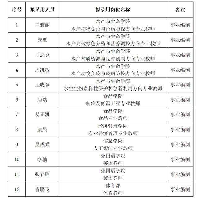 根据《beat365中文唯一官网公开招聘事业编制人员管理办法(试行)》(沪海洋人〔2018〕11号)等文件精神,按照学校招聘程序,经综合考察、学校研究审定,现将近期拟录用人员名单予以公示。