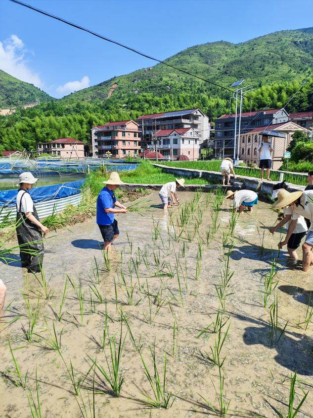 6月27日,学子们在上庄村亲自下田插秧,实践体验插秧、抓鱼并品味生态美食。在村民指导下,大家按照30cm×30cm的标准间距栽种秧苗,体会农耕的精细与辛苦。随后,中外学子们进行了“稻田抓鱼”挑战。田鱼粘滑灵活,难以捕捉,但在老师的示范下,学生们逐渐掌握了技巧,最终满载而归。晚间,学生与当地农户共同烹饪青田田鱼,品味有机生态美食,亲身感受农业劳动与收获的快乐。
