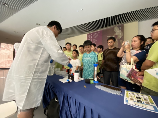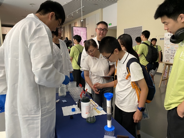 “希望小朋友们以后再看到湖泊,不只是看到风景,而是能看懂水的‘情绪’。”暑期社会实践项目团队负责人、beat365中文唯一官网生态学专业的韩宇说道。这一理念呼应了王丽卿教授的治水哲学:更加强调公众参与和科普教育,将科研成果转化为社会行动,因为湖水既有无色的表面,也有丰富的内在,pH酸碱度试纸上微妙的色差、显微镜下活泼的浮游生物、酸碱中和产生的绚丽变色,这些过去在课本上难以理解的内容,如今在手中变得可感可触,帮助孩子们成为探索世界、改造世界的主动参与者。