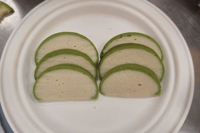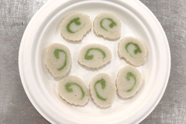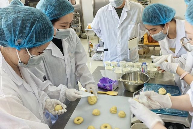 在食品科学与工程实训基地,学员们分组协作,亲手完成从鱼糜制备到鱼丸、鱼糕、鱼饼等成品加工的全流程操作。俞骏老师穿梭其间,不时指点关键技术要领。感官品评环节中,一块块鱼糕被切开、嗅闻、品尝,Q弹度、鲜味、色泽都成了“考核指标”,现场俨然一场严谨的“鲜味质检会”。