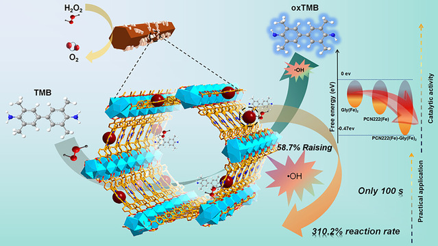 同时,团队成员徐进2025年6月在《ACS Applied Materials & Interfaces》(中科院2区,JCRQ1,IF:8.2)发表研究论文,通过后修饰策略合成了MOFs纳米酶(图5),基于此开发的传感器成功将H2O2含量与小白菜幼苗腐败程度动态关联,为果蔬新鲜度实时监测与货架期预测提供了高效工具。