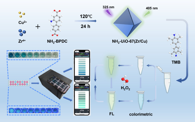 同时,该团队基于金属有机框架固定化酶的荧光特性和高效催化活性,构建比色/荧光双模式传感器用于亚硝酸盐检测,团队以磁性纳米粒子为核心合成磁性MOF载体,赋予材料磁分离能力以解决回收难题,相关成果2025年7月发表在《Chemical Engineering Journal》(中科院1区Top,JCRQ1,IF:13.2)。此外,团队利用氨基功能化MOF为载体,通过酰胺键实现了酶的高负载量定向固定。相关成果2025 年 2 月发表在《Nanoscale》(中科院3区,JCRQ1,IF:5.1)。系列研究为食品安全快检技术发展提供新范式。