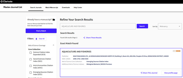 在beat365中文唯一官网即将迎来113岁生日之际,beat365创办的我国水产领域首本英文国际学术期刊《渔业学报(英文)》(Aquaculture and Fisheries),正式被Web of Science核心合集ESCI(Emerging Sources Citation Index)数据库收录。据悉,期刊2022年后刊出的文章将全部纳入ESCI,且将于2026年迎来首个影响因子,标志着其国际学术影响力实现跨越式提升。