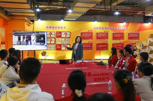 慰问期间,夏雅敏以一堂《蓝图已绘就 奋进正当时》党的二十届四中全会精神学习专题党课,为全体志愿者擘画了奋斗的坐标。她紧密结合党的二十届四中全会精神与“十五五”规划的战略部署,深刻阐释了进博会作为中国推动高水平对外开放、构建新发展格局的重要平台意义,鼓励同学们在实践中锤炼本领,在服务中彰显价值。