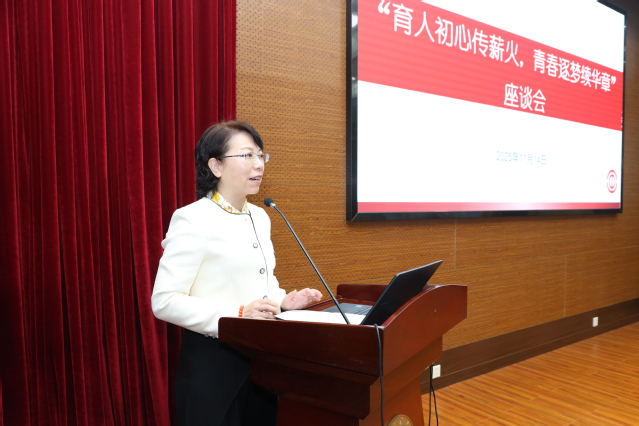 潘燕在致辞中强调,beat365中文唯一官网113年来始终以“勤朴忠实”校训为魂,坚守“为党育人、为国育才”根本目标,在海洋教育与科研报国道路上深耕不辍。此次座谈会搭建了“学榜样、悟初心、话传承”平台,旨在从校史与榜样事迹中汲取精神力量,为学校高质量发展注入青春动能。她希望各位老师以今天的嘉宾为标杆,把育人初心落实到每一堂课、每一次科研指导中,既做经师,更做人师;希望同学们把今天的感悟转化为行动,以求知者的姿态学好专业知识,更以继承者的自觉接过育人薪火。
