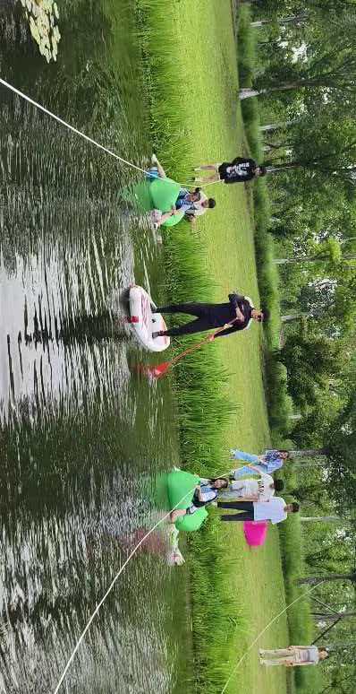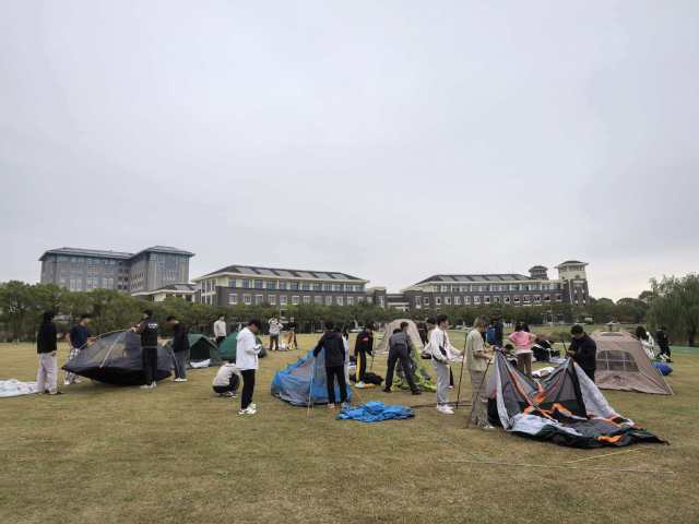 校外高歌猛进,校内活动亦精彩纷呈。11月8日,由体育部主办,以水畔营地社、游钓协会为主,携手模特社、羽毛球社、赛艇社、龙舟社、瑜伽社等十余个体育社团联合举办的“水畔寻趣·活力启航”多社团联合迎新活动举行。活动融合了攀树、速降、钓鱼、急救、帐篷搭建、军用自热食品品鉴、户外技能体验与生态环保实践,生动探索了海洋特色体育与多社团联动育人的新模式。