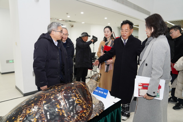 校领导听取徐修文博士(右二)介绍玳瑁标本