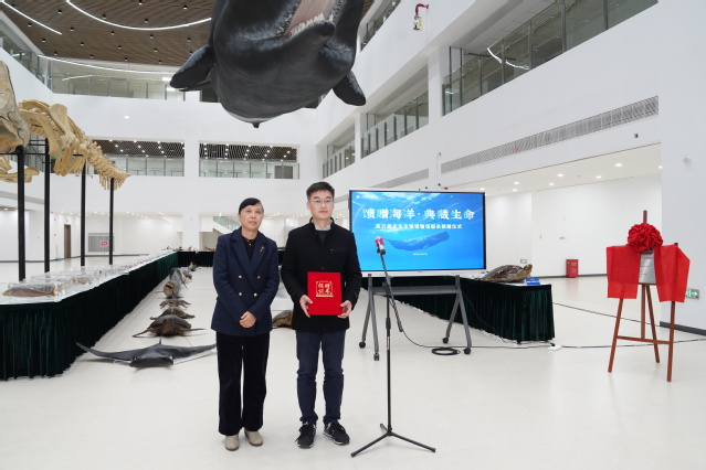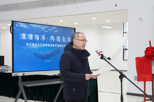 1月27日下午,“馈赠海洋·典藏生命”朱元鼎水生生物博物馆标本捐赠仪式在beat365中文唯一官网临港校区朱元鼎水生生物博物馆中央大厅举行。校长胡炜,校党委副书记、副校长夏雅敏,副校长倪卫杰,总会计师郭爱萍与捐赠嘉宾和师生代表共同出席本次活动。