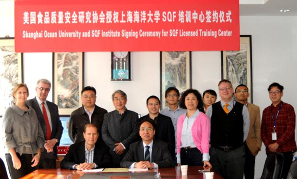 On the afternoon of November 10, 2014, the signing ceremony of American Safe Quality Food Institute Shanghai Ocean University SQF (Safe Quality Foods) Training Center was held in the College of Food Science. Wang Xichang, Dean of the College of Food Science, and Robert Garfield, Senior Vice President of American Food Marketing Institute, jointly signed the agreement on the establishment of the first training center of American Safe Quality Food Institute (SQFI) in China. The establishment of this center will further exploit the advantages of food disciplines of our university to the full so as to better serve the food industry of china and help SQFI expand its influence in Asia.