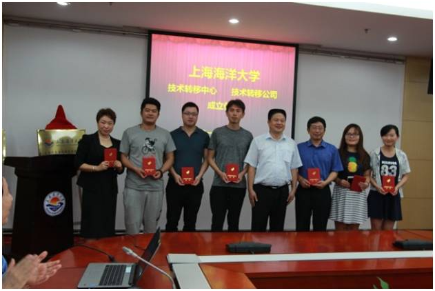 At the meeting, General Manager Wu Jionghua gave anaccount of the preparation of the technology transfer system of our university;Yu Yuan, Chief of the HR Department, read out the founding document of theTechnology Transfer Center; Ni Guojin, General Manager of the Assets Company,read out the founding resolution of the Technology Transfer Company; LiYancheng, Vice President of Shanghai Ocean University and Chairman of theTechnology Transfer Company, appointed Wu Jionghua as General Manager of thecompany on behalf of the board of directors; Li Jiale, Vice President ofShanghai Ocean University and Director of the Technology Transfer Center,issued certificates to the scientific and technical personnel who had obtainedthe qualifications of Shanghai Technical Broker, and signed a technologytransfer contract with Shanghai Fisheries General Corporation(Group)(SFGCG)and Shanghai Deyu Marine Science & Technology Co., Ltd.