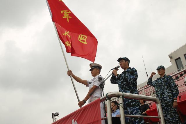 Afterwards, Wu Jiamin, Secretary of Party Committee of Shanghai Ocean University, presented the regiment flag to the commander of the Military Training Regiment. All participating students made solemn vow by the flag.