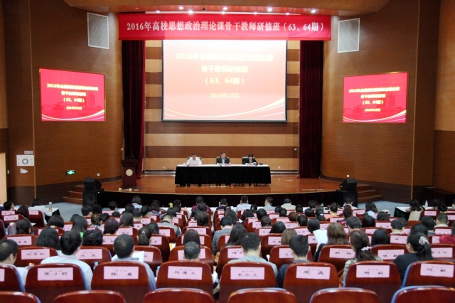 To thoroughly apply On Further Strengthening and Improving the Propaganda and Ideological Work in Colleges and Universities under the New Situation, according to the work deployment of the central government about the in-depth implementation of Marxist theoretical studies and construction, the 21-day 2016 National Seminar for Backbone Teachers of Ideological and Political Theory Courses in Colleges and Universities (phases 63 and 64), organized by the Propaganda Department of the Central Committee of the CPC and the Ministry of Education, started in SHOU on the morning of Oct. 23. At the opening ceremony, Yan Shuang, Deputy Director of the Propaganda Department of the CPC Shanghai Committee and Secretary of the CPC Committee of Shanghai Federation of Social Science Associations, presented to all the trainees his opening report, entitled How to Do Well in the Ideological Work of the CPC. Also present at the opening ceremony were Wang Xiping, Deputy Secretary of the CPC Committee and SHOU Vice President; Li Xinghua, Director of the Moral Education Department of Shanghai Municipal Education Committee; and nearly 200 teachers of ideological and political theory courses in colleges and universities from various provinces, cities and autonomous region all over the country. The opening ceremony was directed by Sha Jun, Director of Shanghai Moral Education Development Center for students.