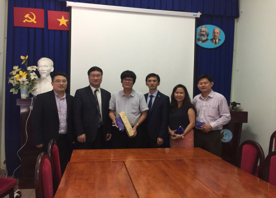 During the visit at Ho Chi Minh City University of Natural Resources and Environment, President Phan Dinh Tuan and head of theOffice of the International Affairs, professors and staffs held exchanges anddiscussions with our delegation. Wu Jiannong elaborated SOU’s development andinternationalization. Lin Jun gave an academic lecture on the issue ofmarine ecology and environment for teachers and students andconducted a detailed discussion on relevant issues. You Luquan gave detailedintroduction to the questions regarding study in China. After the lecture, the two sides conducted activediscussions on the possible cooperation in the future and reached intent oncooperation. Then the delegation visited the laboratories and carried outin-depth exchanges of ideas with relevant professionals.