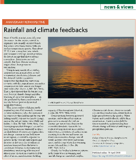 Link of professor Ma’s commentary Rainfalland Climate Feedback (impact factor: 13.941):