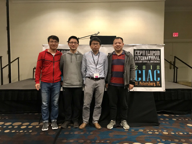 To promote worldwide scientific research on cephalopods, on November 10-16, 2018, the Cephalopod International Advisory Council (CIAC) held the triennial World Academic Conference on Cephalopods in St. Petersburg, Florida of the US. More than 200 cephalopod researchers from 28 countries and regions worldwide took part in the event, and exchanged opinions about the frontiers and hotpots of cephalopod research. At the invitation of CIAC, the College of Marine Sciences sent a four-person delegation, consisting of teachers Liu Bilin, Yu Wei and Fang Zhou and Doctoral candidate Hu Guanyu, attended the conference.