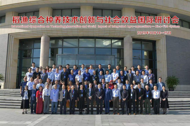 On October 13-15, the International Symposium on Technology Innovation and Social Impact of Integrated Agro-aquaculture- Rice-Fish System was held at SHOU. It was co-sponsored by SHOU, the Food and Agriculture Organization (FAO) of the United Nations, FAO), and China Society of Fisheries, and co-organized by National Fishery Technical Extension Center (NFTEC) and China Strategic Alliance of Industry Technology Innovation of Integrated Agro-aquaculture- Rice-Fish System. Present at the symposium were Matthias Halwart, Director of FAO Fisheries & Aquaculture; Yuan Xinhua, senior officer of FAO Fisheries & Aquaculture; Liao Weimin, senior technology officer of FAO Fisheries & Aquaculture; Dr. Huang Jie, Secretary-General of the Network of Aquaculture Centres in Asia-Pacific (NACA); and representatives from ten countries, including France, Kenya, Laos, Indonesia, Nepal, Myanmar, Cambodia, Sri Lanka, Vietnam, and the Philippines.