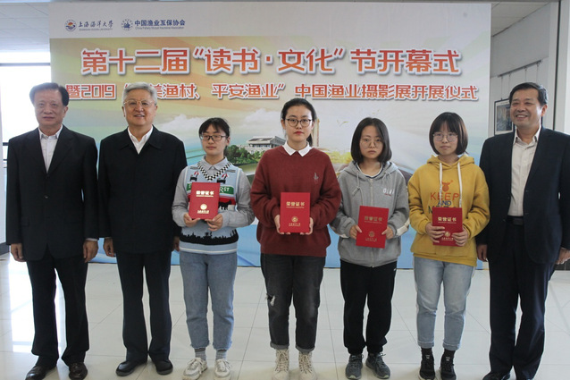 On November 9, the opening ceremony of the 12th “Reading · Culture” Festival of SHOU & the launching ceremony of 2019 “Beautiful Fishing Villages, Safe Fishery Industry” Chinese Fishery Photography Exhibition were held in the hall on the third floor of the Tuwen Information Center. Present at the ceremonies were Song Mingchang, former Party member of the State Administration of Press, Publication, Radio, Film and Television; Li Jianhua, President of China Fishery Mutual Insurance Association and former Chief of the Fisheries Bureau of the Ministry of Agriculture; Wu Jiamin, Secretary of SHOU CPC Committee; Zheng Weidong, member of the Standing Committee of SHOU CPC Committee and Director of the Propaganda Department. They presented the certificates of honor to the winners of “SHOU Essay Competition” and “Readers of SHOU”.