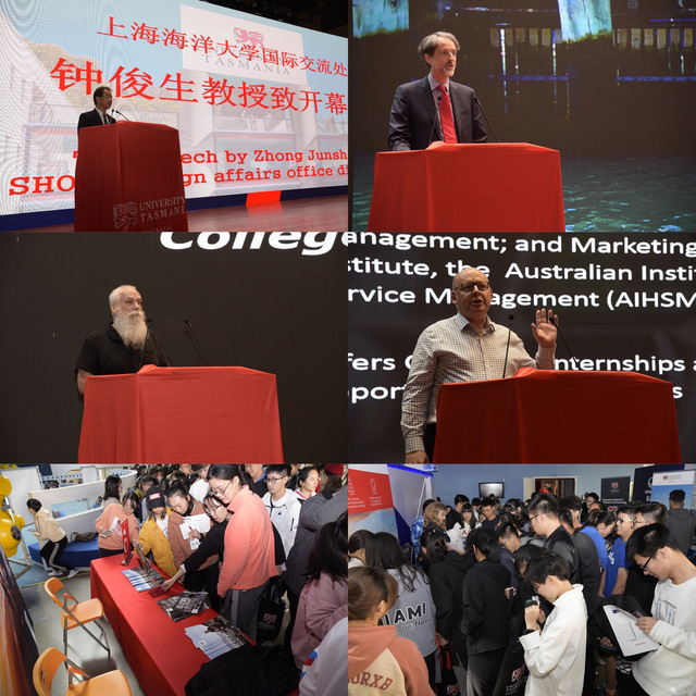 To strengthen the ties between SHOU and the University of Tasmania, enhance SHOU students’ understanding of the University of Tasmania, and promote cultural collisions and exchanges, SHOU “Tasmania Day” activity was held at the Student Activity Center on the afternoon of October 29. Present at the event were Rufus Black, President of the University of Tasmania; Rob Wilson, Vice President in charge of international affairs; Cameron Parsons, Director of the Office of International Cooperation under the International Department; Jason Purdie, Director of the Office of Administrative Affairs; Doctor Stuart Crispin, Dean of the Business School; Zhong Junsheng, Director of the Foreign Affairs Office of SHOU; Dean Wang Jizu, Deputy Secretary of the CPC Committee Yang Yanyan, and Deputy Dean Wang Na of AIEN Institute; and other Chinese and foreign teachers. The activity was directed by Ma Chunguang, Director of the Student Affairs Office of AIEN Institute.
