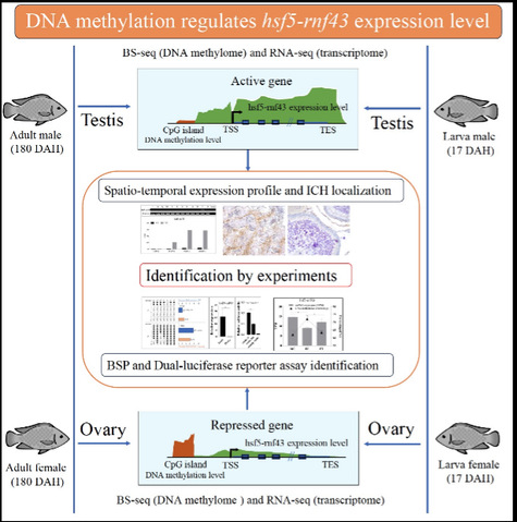 The study also discovers that genomic DNA methylation regulates the sex-differentiated expression of the fusion gene hsf5-rnf43 during the early development of the gonads of Tilapia mossambica, and that it is influenced by high temperature during the temperature-sensitive period in the gonadal differentiation of Tilapia mossambica. hsf5 belongs to the family of heat shock protein (HSP) transcription factors, while rnf43 has the function of promoting cell growth and division. The fusion of the two may be an important mechanism underlying the temperature regulation of the germ cell development and sex differentiation of Tilapia mossambica.