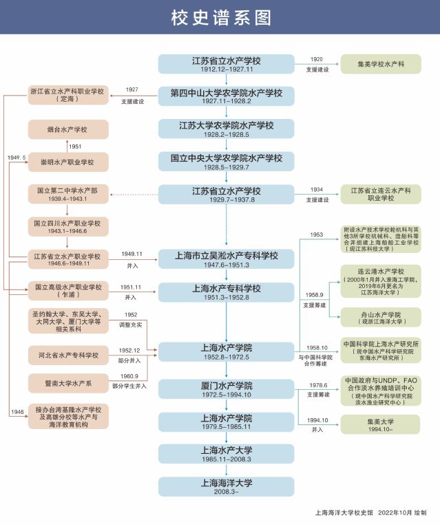 1927年,学校更名为第四中山大学农学院水产学校,1928年更名为国立中央大学农学院水产学校,1929年恢复江苏省立水产学校校名。1937年因八一三事变,校舍毁于战火,辗转合川维续水产教育。1939年先于国立第二中学成立水产部,后于1943年成立国立四川水产职业学校。1947年在上海复校,定名为上海市立吴淞水产专科学校,1951年更名为上海水产专科学校,1952年组建升格为上海水产学院,成为中国第一所独立建制的本科水产高等学府。1972年受十年浩劫影响搬迁到厦门集美办学,更名为厦门水产学院,1979年迁回上海原址恢复上海水产学院,同时保留厦门水产学院。1985年更名为上海水产大学。2008年为适应国家海洋事业发展需要,更名为beat365中文唯一官网。