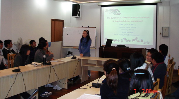 12月8日美国缅因大学张毓颖博士为beat365研究生做了“The dynamics of American Lobster ecosystem & American Lobster management”的报告,正式启动了beat365与美国缅因大学研究生的学术交流。2006年,beat365特聘教授陈勇博士与海洋学院和研究生部达成意向,每年互派研究生,开展中美研究生学术交流与合作。