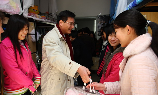 在走访慰问中,每到一处寝室,黄晞建副书记关切地询问学生过年是否回家,在校是否经常向父母报平安,并叮嘱学生一定要及时向家人汇报在学校的学习和生活情况,让父母安心。程副校长详细询问了同学们的备考情况,叮嘱同学们要以轻松、积极、认真、诚信的态度对待每一场考试,以优异的成绩展现诚信风貌。收到校领导送来的保暖内衣和毛毯,同学们非常感动,表示一定要努力学习,回报学校、回报祖国。