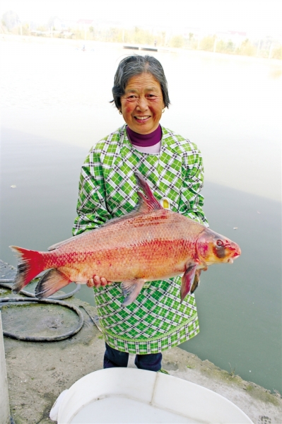 (记者:张园,通讯员:沈林宏)昨天,我市渔业公司一分公司在捕捞成蟹时,意外收获一只重达11.4斤的红色大鱼。经专家鉴定,这条鱼学名叫胭脂鱼,俗称火烧鳊,是观赏鱼族中的珍品,国家二级保护动物,在东南亚享有“亚洲美人鱼”的美称。