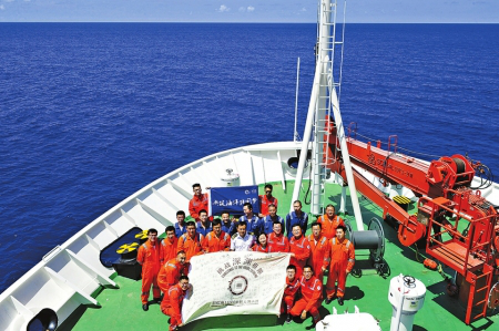 中国万米级载人深潜器科考母船“张謇”号经过11天、2820海里的航行,8月2日在东经146°的太平洋海域穿越赤道,驶入南半球。当天,科考队员在“张謇”号上举行了“过赤道”仪式。