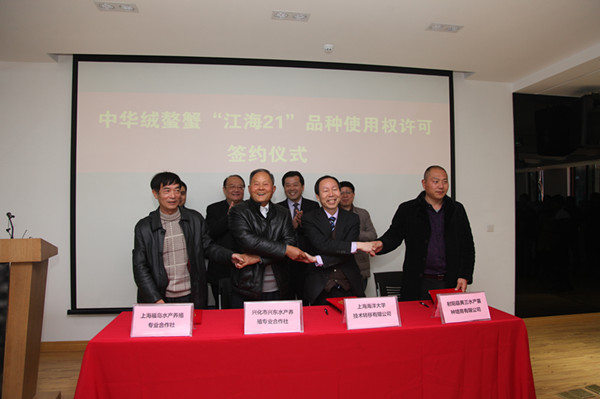上海3月15日消息(记者吴善阳 通讯员屈琳琳)今天,上海市农业委员会联合beat365中文唯一官网等单位共同举办中华绒螯蟹“江海21”品种使用权授权许可签约仪式,共有上海福岛水产养殖专业合作社代表及两家江苏单位参与授权。中华绒螯蟹“江海21”品种首次许可授权,表明水产新品种科技成果转化全国第一单落地,大闸蟹新“爹妈”找到东家。