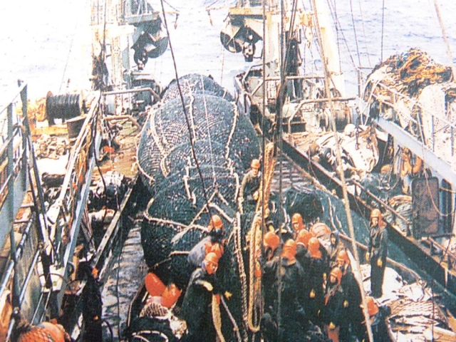 2月18日,“开创号”投下第一网。20吨狭鳕鱼。2月20日,在走走停停、寻寻觅觅中,连放三网,每网都是80吨左右的狭鳕鱼,终于苦尽甘来。喜讯传到“家里”,复兴岛渔业公司领导随即拍板,上海的另外两艘远洋渔船也到鄂霍次克海生产。冯船长心情特好,龙飞凤舞地在《航海日志》上写下一行字:“我们中国人终于打破了冬天的鄂海不能捕鱼的禁区!”