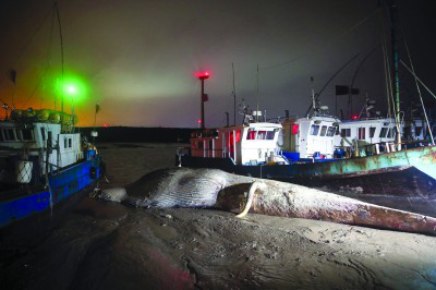 鲸现上海:渔民海面上捞获一头死亡鲸鱼