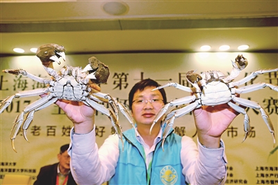 有意思的是,此次亮相大赛的上海河蟹个个都是“大长腿”。专家介绍,这是因为上海本地产河蟹采用良种的比例高,其外形的美观度和整齐度较其它河蟹更高。但上海河蟹养殖面积只有1.4万亩,产量1500吨,因此产量有限,品质好,属于市场上的香饽饽,通常是按只卖:1只蟹的均价在60元左右,高于外地的1斤蟹价格,一般10月上市,11月就销售完毕。市民想品味上海本地蟹需赶早。