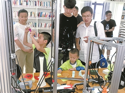 在科创小英才夏令营开营仪式上,孩子们对3D打印兴趣浓厚。 须双双 摄