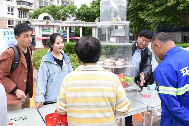 而在另一分会场——杨浦科技节启动仪式的现场,食品学院的志愿者们也参与了体脂仪的测试与讲解,同时向市民解答控制体脂中食品营养搭配的重要知识。