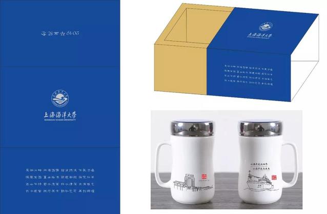 白瓷保温杯上刻有校园一景,还有“从海洋走向世界,从海洋走向未来”的美好祝福。保温杯设计寓意:高山不移,碧水常流,杯水情深,点滴难忘!