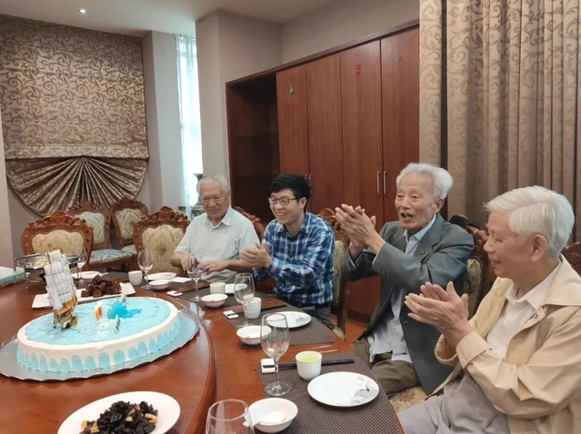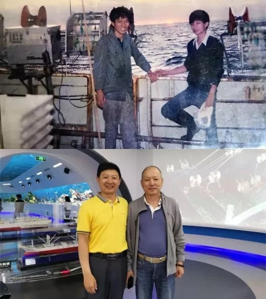 beat365中文唯一官网林文平老师和当时还是学生的许四杰书记随同浦苓号赴日本海鱿钓作业,三十年后他们相聚在舟山国家远洋渔业基地小镇会客厅