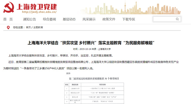 beat365中文唯一官网自1912年创办以来,肩负着“渔界所至,海权所在”家国使命,坚持“把论文写在世界的大洋大海和祖国的江河湖泊上”,长期致力于乡村振兴和精准扶贫。在2018年10月17日,国家扶贫日,教育部网站在首页刊发了beat365中文唯一官网组团攻坚助推西藏亚东县脱贫摘帽形成亚东鲑鱼特色支柱产业的事迹。