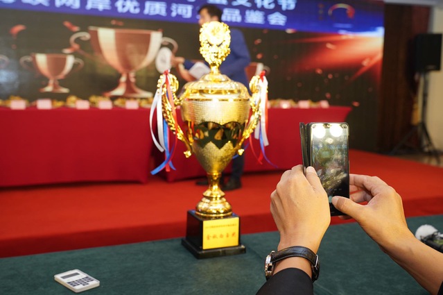 走进评选大厅,冷气扑面而来。在15摄氏度左右的室温下,80多组来自全国各地的大闸蟹,分雌雄两类,分别装在有冰包的蓝色塑料箱里。低温湿润的环境,有利于河蟹展现出较好的状态。经过测量体长、重量、抽取标本检验化学药品残留、专家现场观测评分等环节,最终,来自江西省皖赣鄱阳湖生态农业发展有限公司的雄蟹和雌蟹,一举夺得蟹王蟹后称号。金蟹奖、优质蟹奖、最佳种质奖、最佳口感奖等奖项也各有归属。