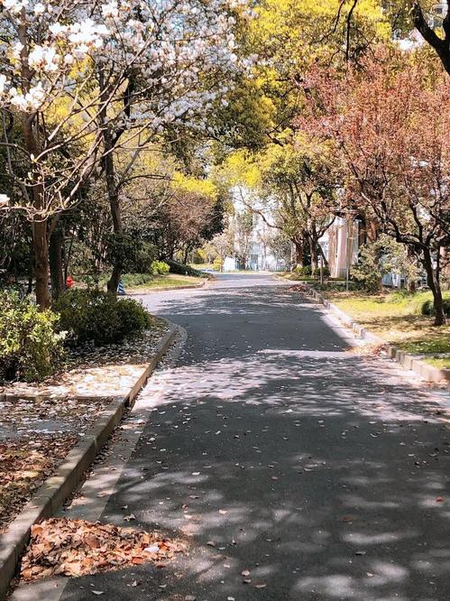 这是2019年春天拍摄的一张宿舍楼底的风景。每天早上下楼打开门时,迎来的都是满地的花瓣和落叶,偶尔还会遇到几只小猫出来晒太阳。校园里的风景一向是最美的,令人十分怀念。返校以后一定要和舍友一起好好地逛一逛校园,多多拍照留念。