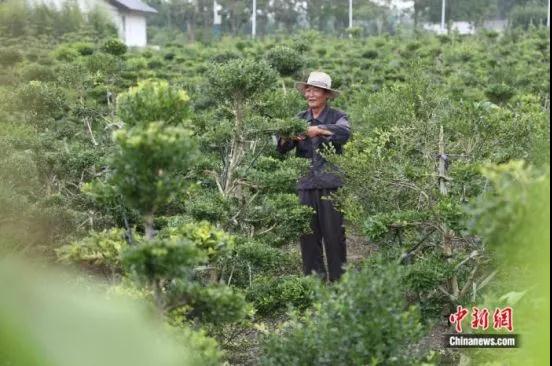 “我们老两口种了4亩黄杨,一年能卖20多万元。村里都种,我家种的不算多。”66岁的茅锦昌正在自家园子里修剪黄杨。